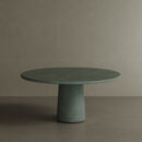 The Santo Dining Table in Moss Microskin, combines style and functionality, offering a contemporary yet timeless touch to both indoor and outdoor spaces. With its expansive 160cm diameter, the table features a graceful round top and a sturdy conical base, creating a natural and modern atmosphere for up to eight guests. The smooth surface and gently curved edges reflect the tranquil elegance of Wabi-Sabi and Japandi aesthetics, making it an ideal centrepiece for family gatherings or intimate dinners with friends.